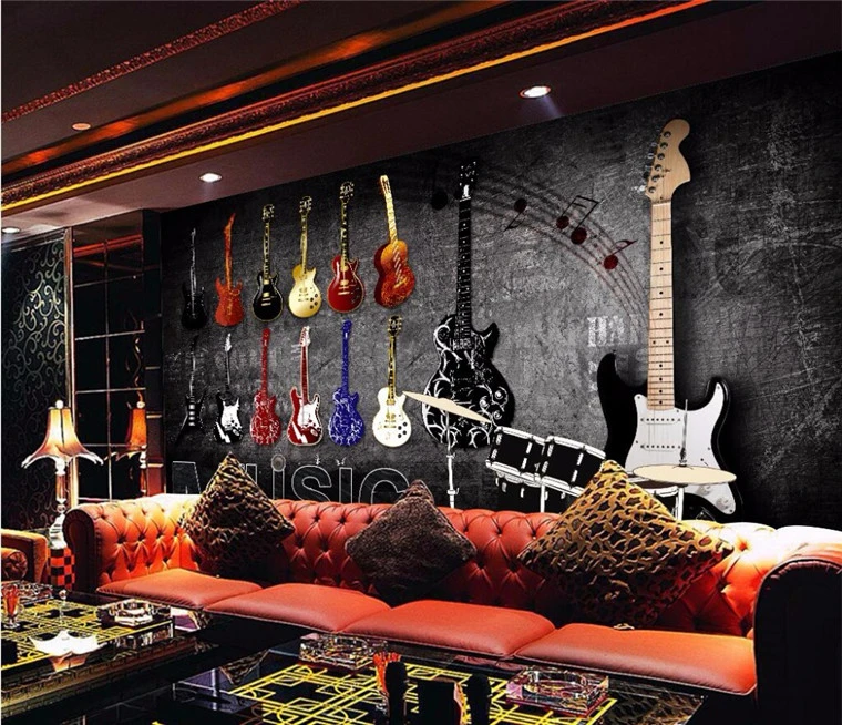 custom mural wallpapers 3d retro nostalgic rock musical instruments wallpapers living room bedroom mural 3d wallpaper
