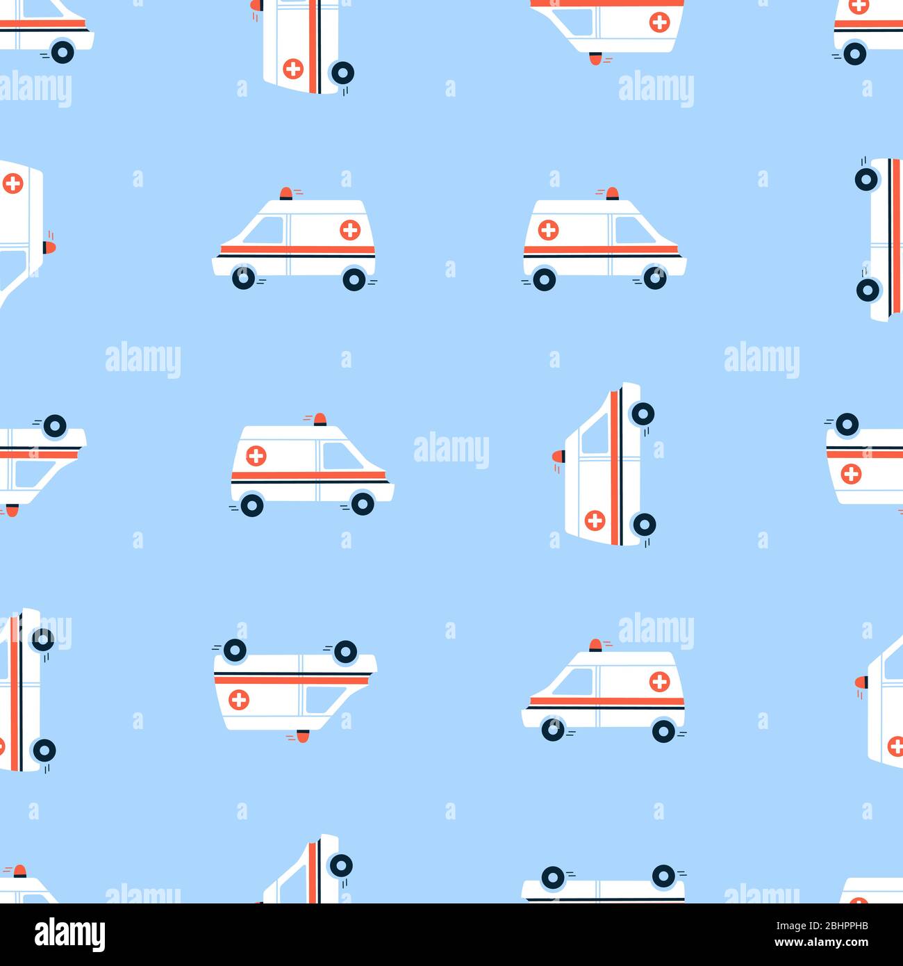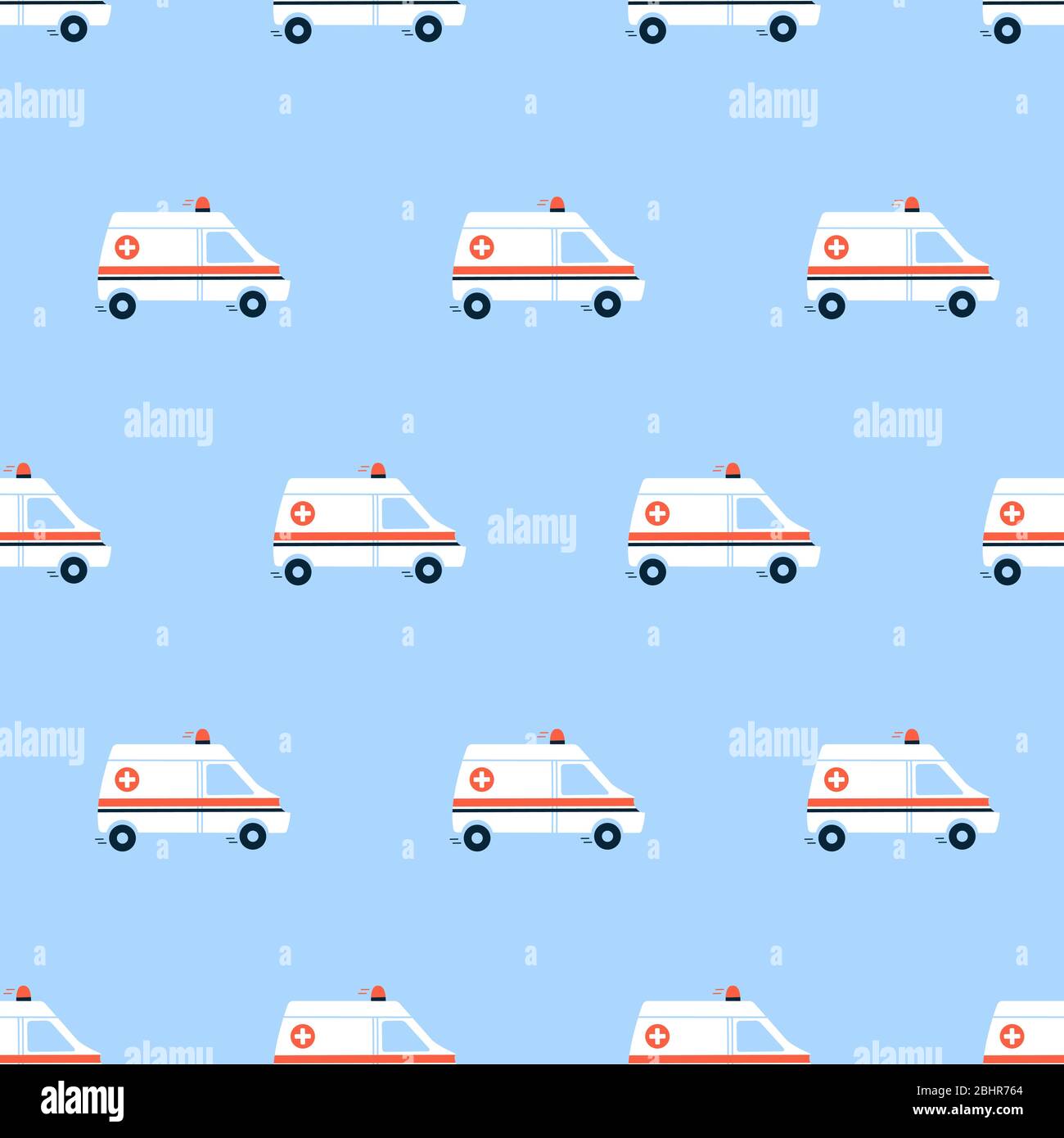 https www alamy com vector seamless pattern in flat style endless texture wallpaper background fabric print white ambulance car with red siren light medical vehicle image355167068 html