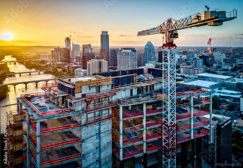 tower crane in austin texas during sunset wall mural