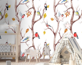 bird wall mural removable wallpaper peel and stick bird wall art tree wallpaper drawing wall decor watercolor wallpaper 38