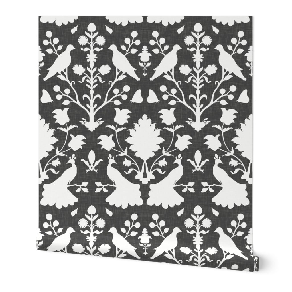 wallpaper roll vintage bird damask and white birds peacocks black 24in x 27ft walmart com