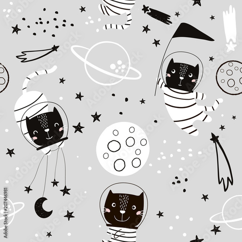 seamless childish pattern with cat
