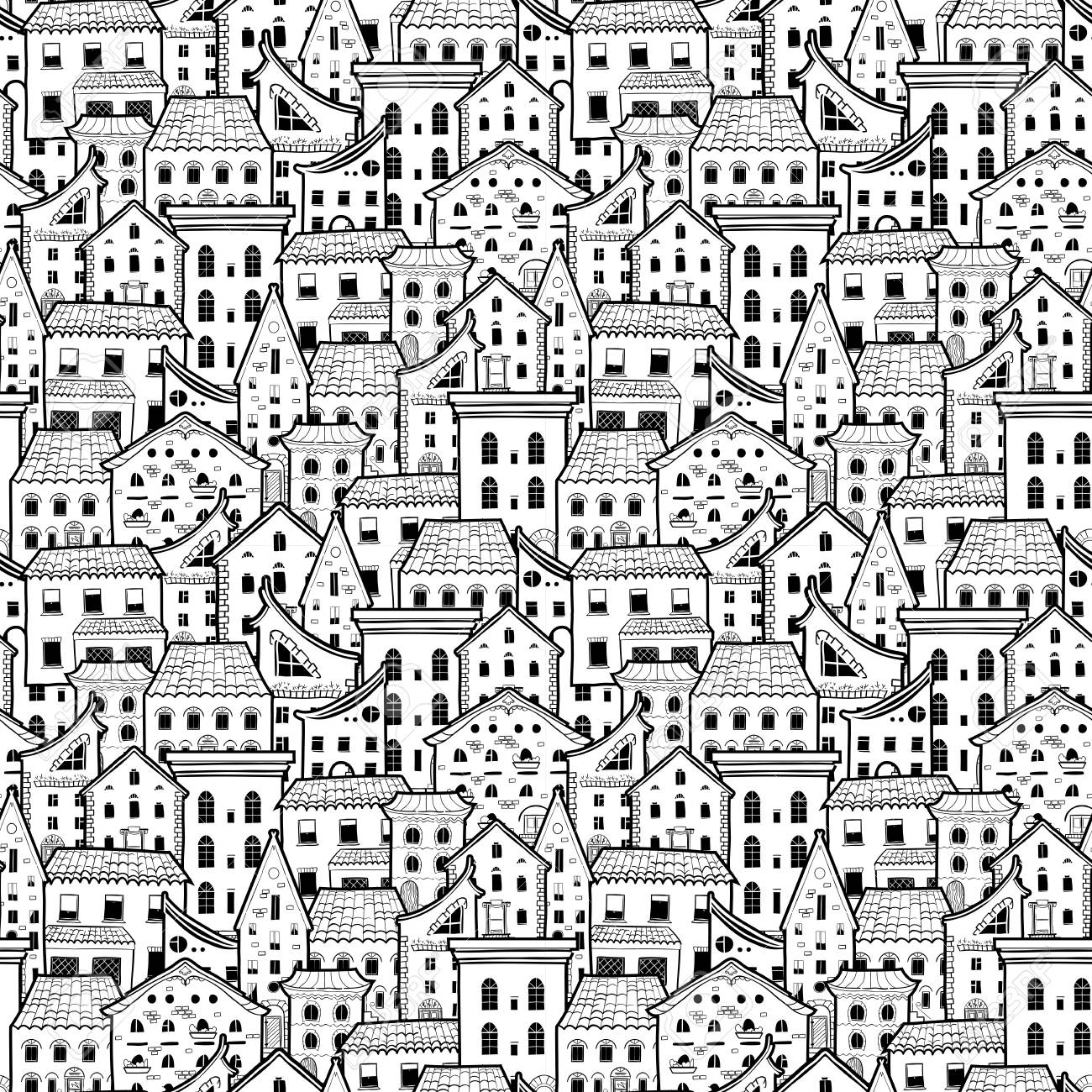 https www dreamstime com trees houses seamless pattern black white colors city landscape can be printed used as wrapping paper wallpaper textile fabric image105239936