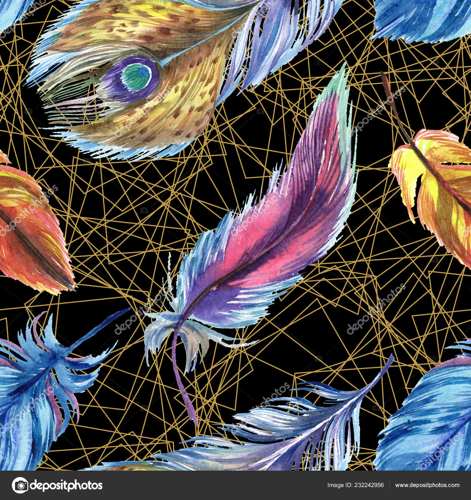 52 feather black background