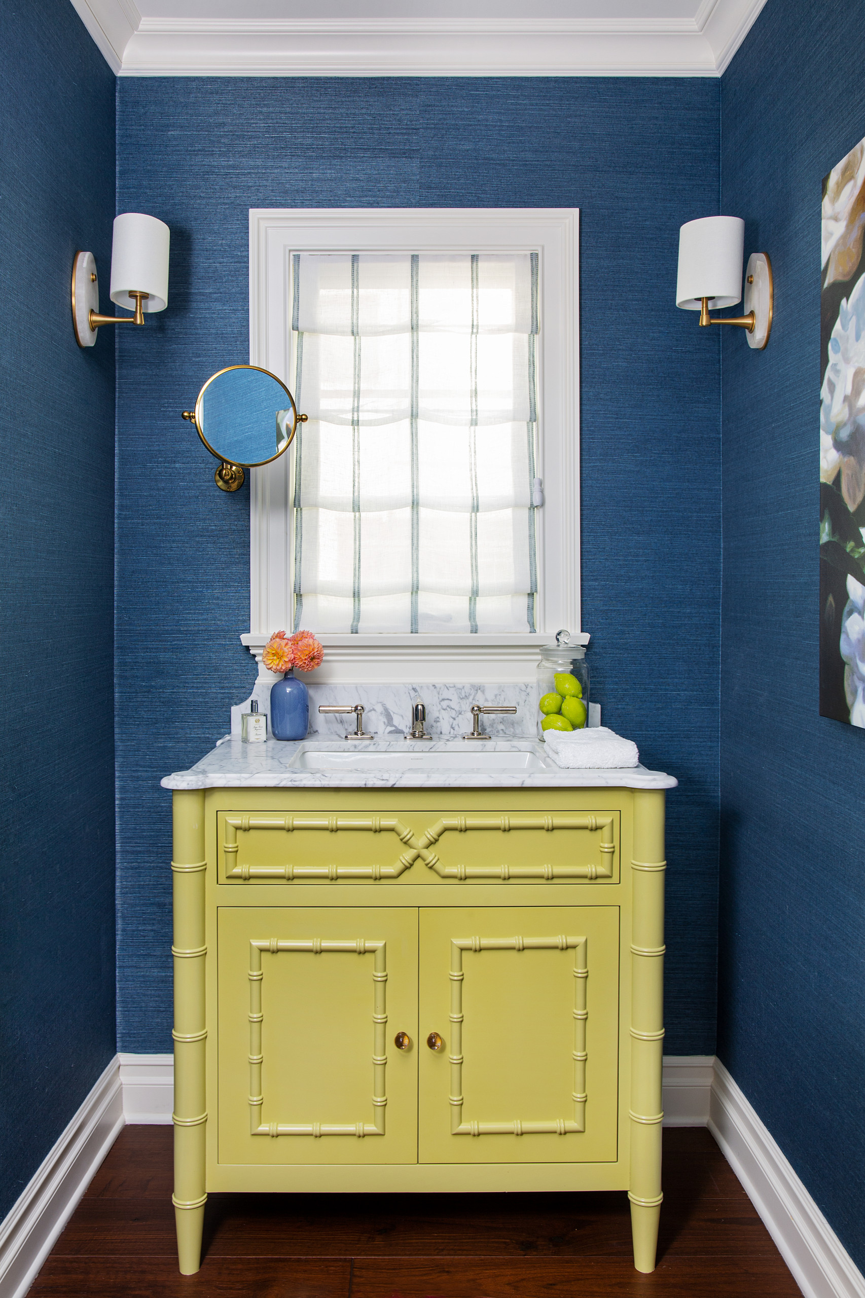 navy blue wallpaper bathroom
