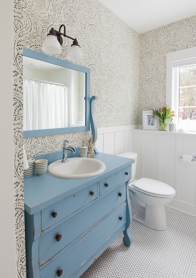 wallpaper in a guest bathroom