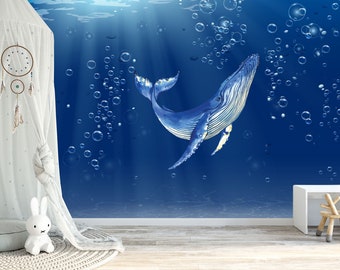 blue whale wallpaper etsy