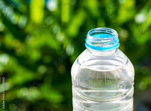 bottle water made to plastic on the wood background using wallpaper