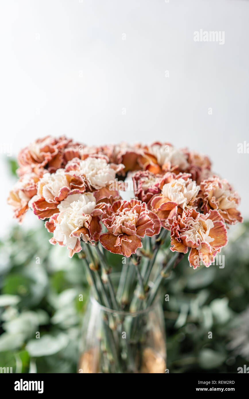 https www alamy com bunch unusual color carnation in glass vase bouquet flowers on light background wallpaper image232890993 html