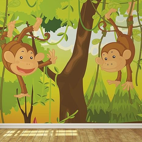 monkeys in trees childrens wallpaper mural