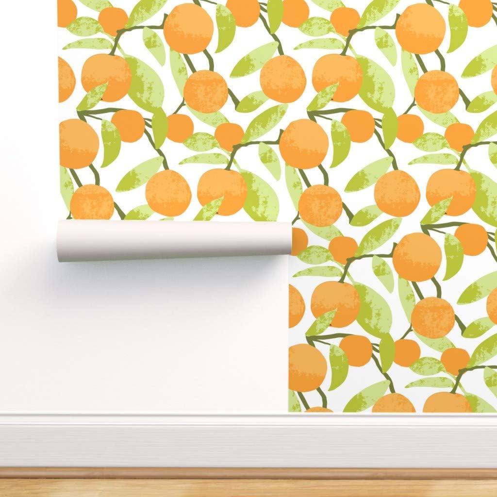 spoonflower peel and stick removable wallpaper orange grove oranges fruit citrus clementines bright summer print self adhesive wallpaper 12in x 24in