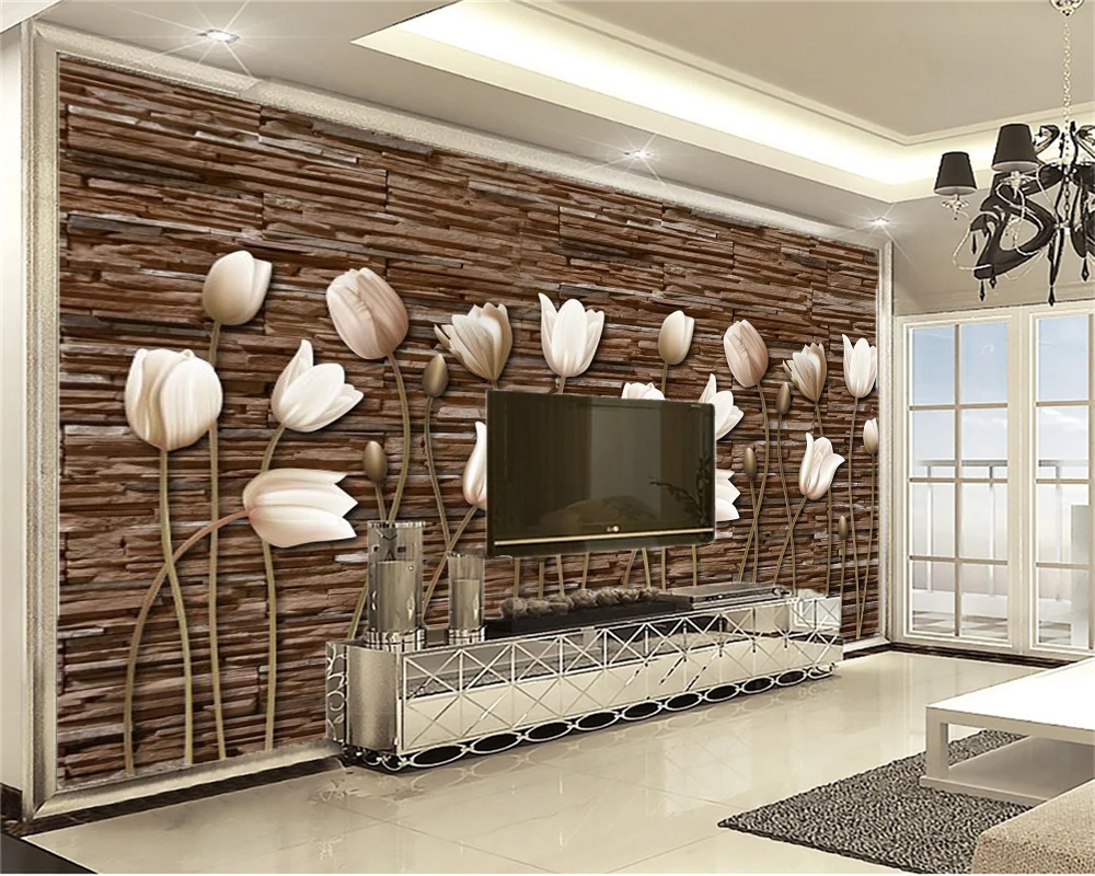 classic 3d wallpaper stone wall beautiful tulips digital printing hd decorative beautiful wallpaper