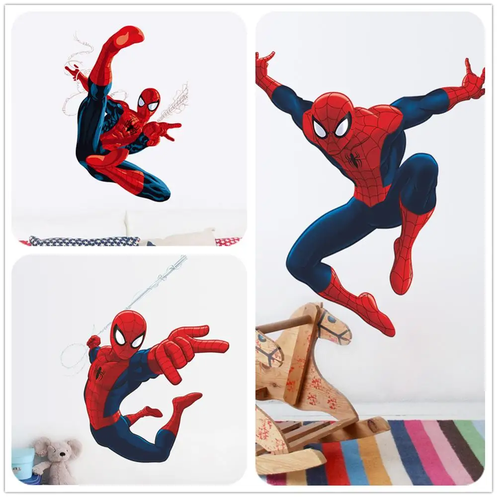 superhero spiderman wall stickers full body classic action web 3d simulation wallpaper sticker interior home theme restaurant