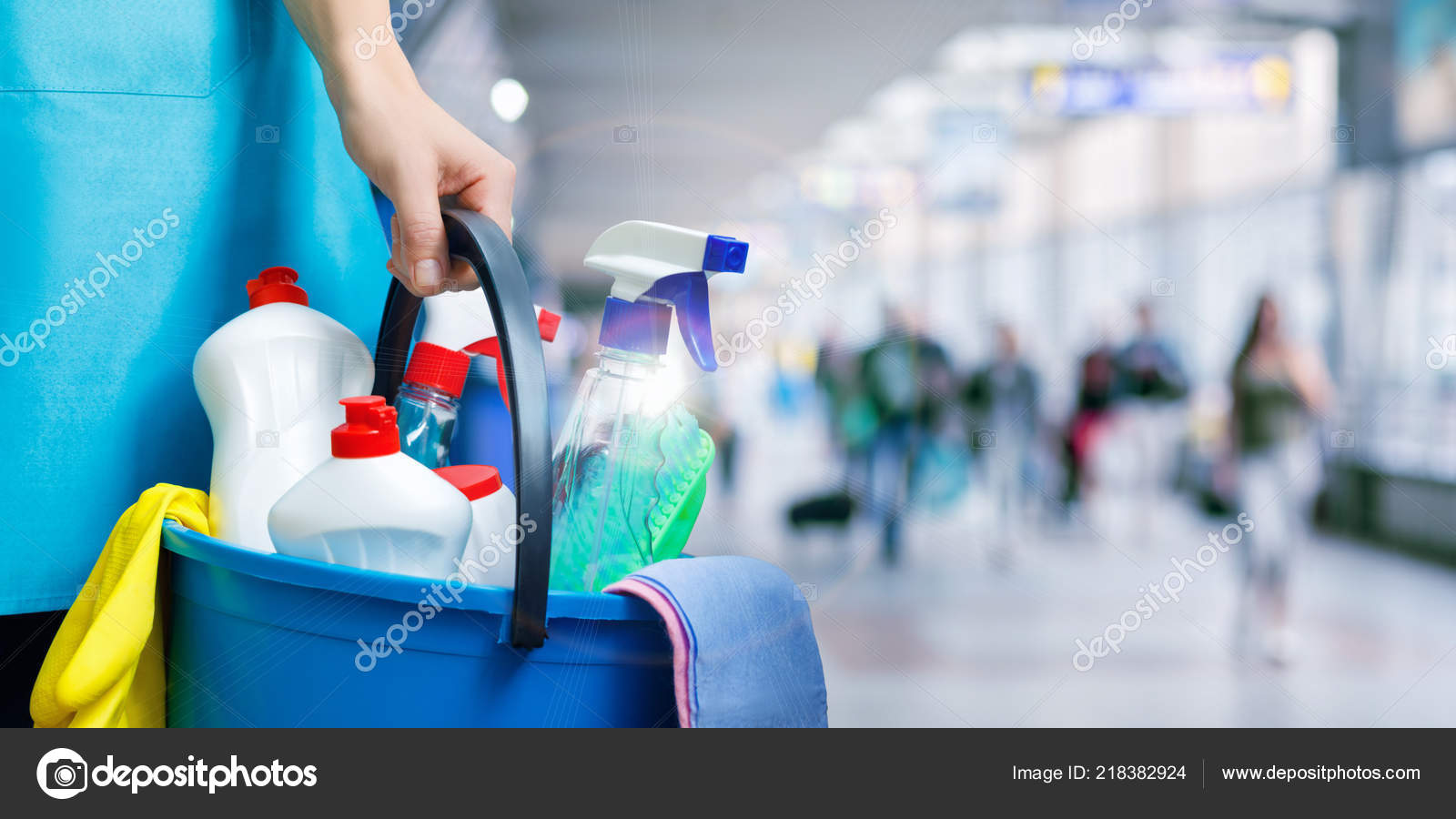 https depositphotos com 218382924 stock photo cleaning lady cleaning products blurred html