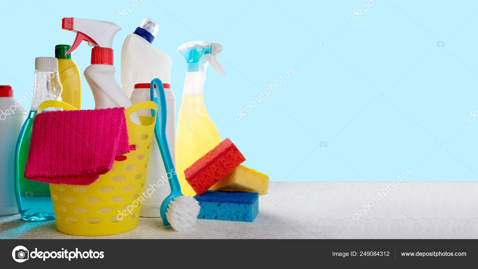 basket with cleaning products on blue background cleaning with stock photo image by c lanasweet 249084312