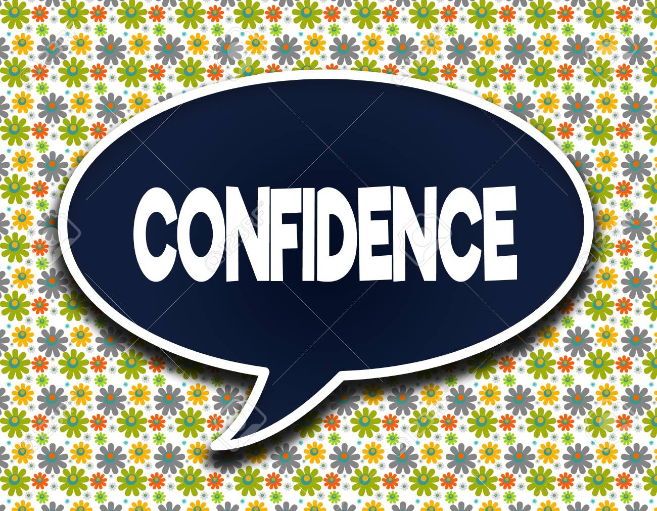 dark blue word balloon with confidence text message flowers