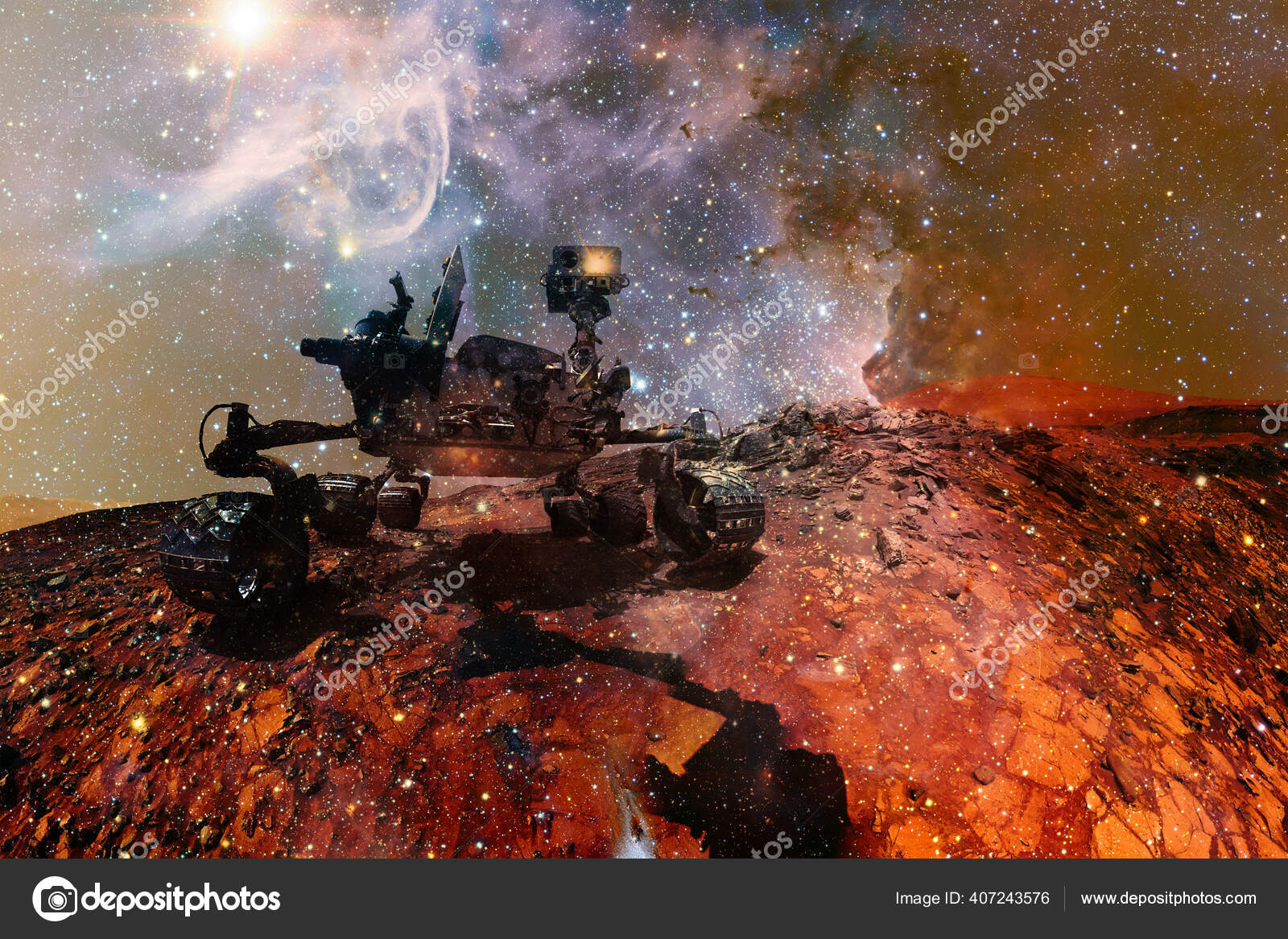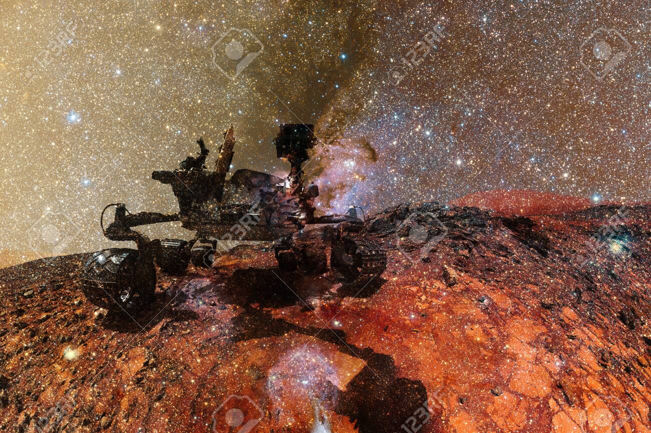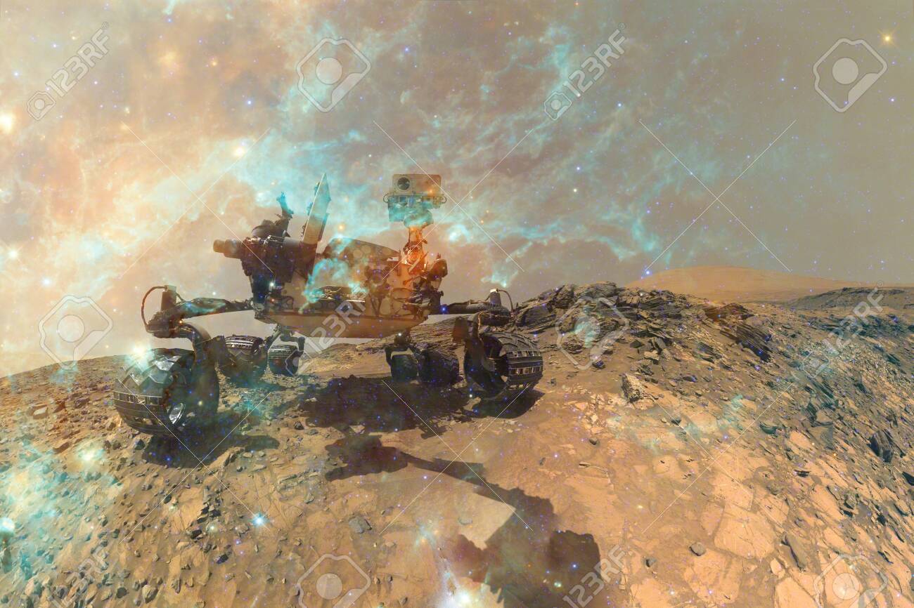 curiosity rover exploring surface mars science fiction wallpaper elements image stock photo image by c outer space 376380696