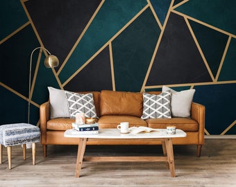 dark green geometric line art deco wallpaper mural