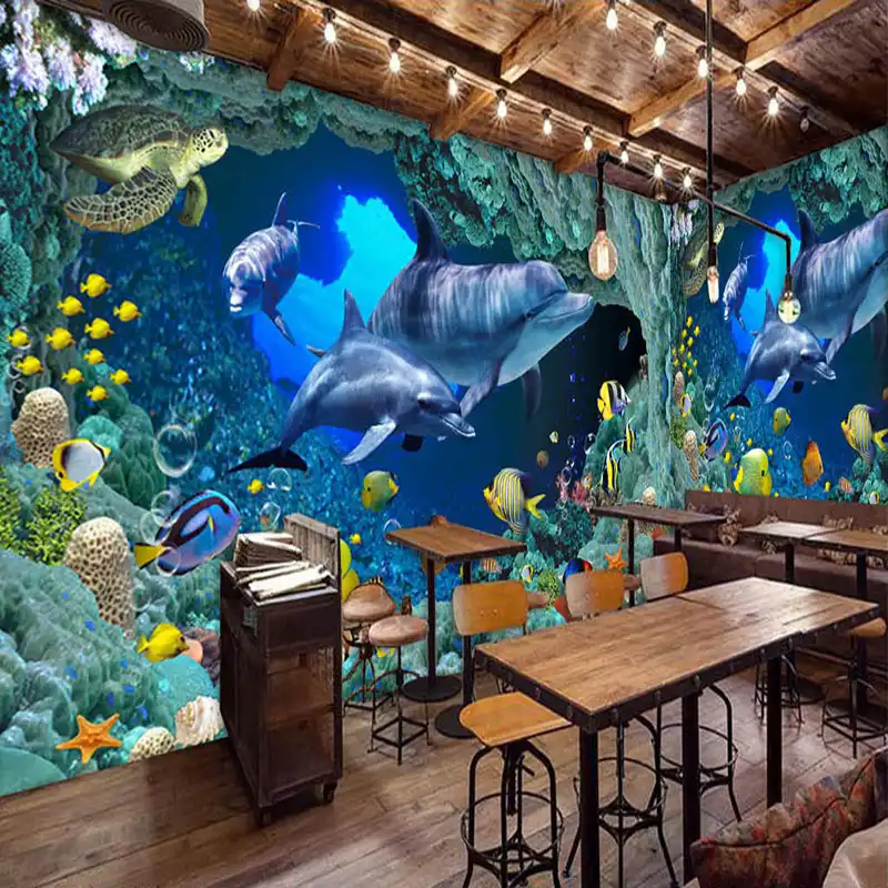 satin al 3d photo duvar kagidi pvc su gecirmez kendinden yapiskanli denizalti magara yunuslar tropikal balik duvar resmi cikartma tl160 07