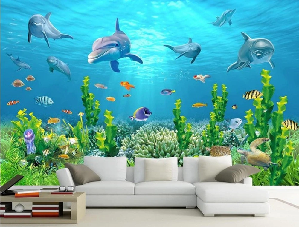 satin al 3d duvar kagidi ozel fotograf ipek duvar duvar kagidi 3d okyanus dunya denizalti yunus yatak oturma odasi arka plan duvar dekorasyon tl87 75
