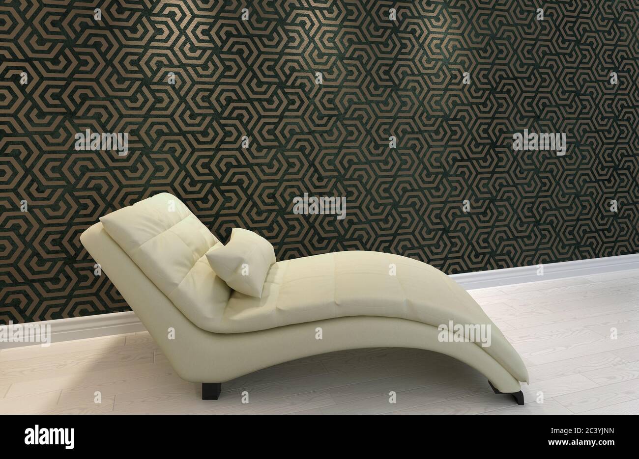 https www alamy com 3d rendering of a room with a resting chair and browngreen seamless wallpaper minimalism is here simple but effective furniture and color contrast image363869121 html