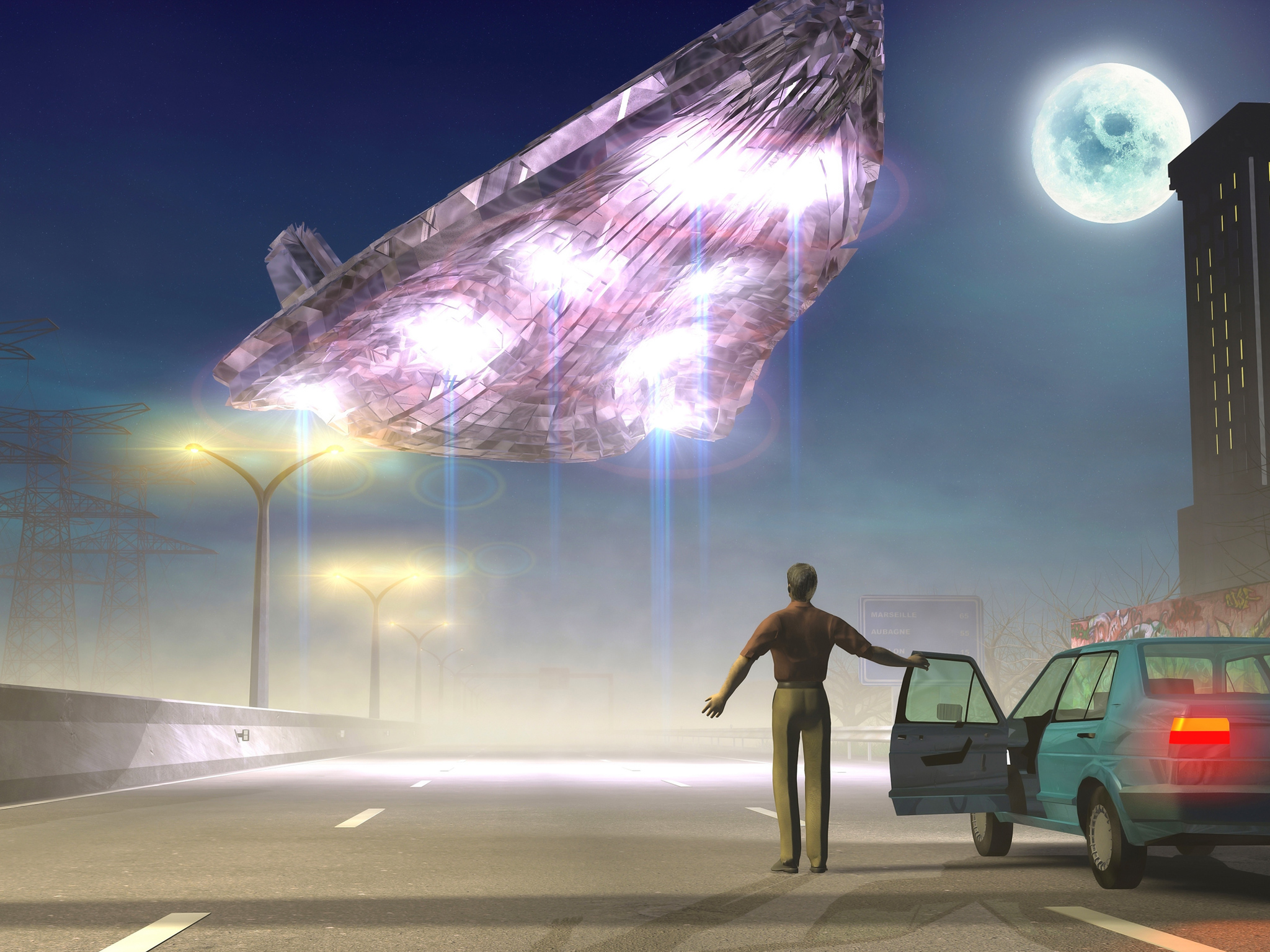alien space ship encounter wallpaper mural