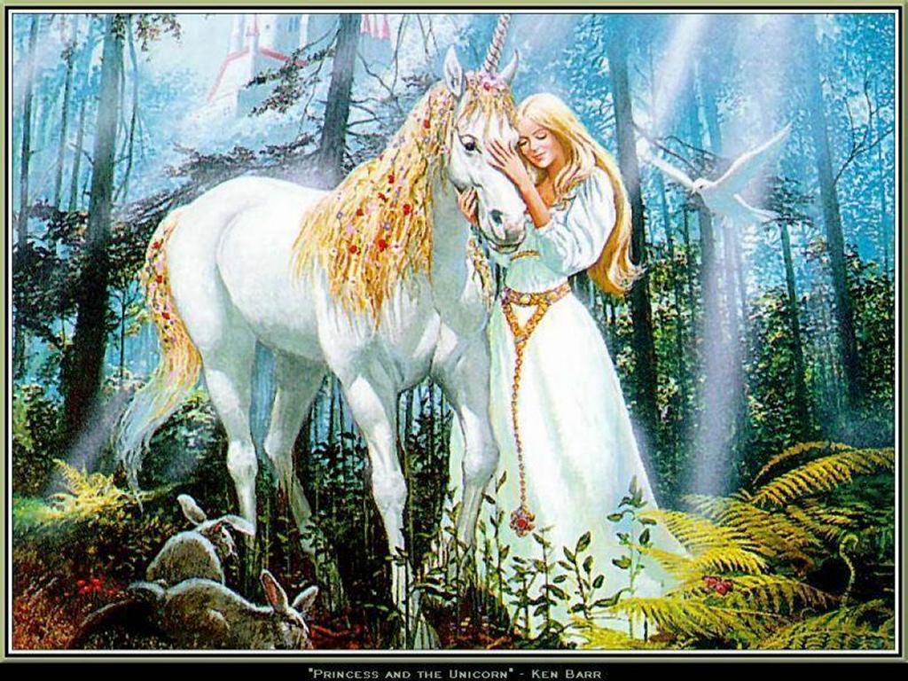 fantasy girl and the unicorn wallpaper