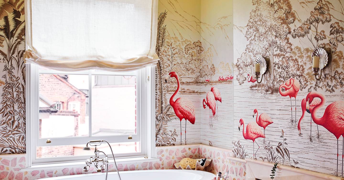 flamingo wallpaper bathroom