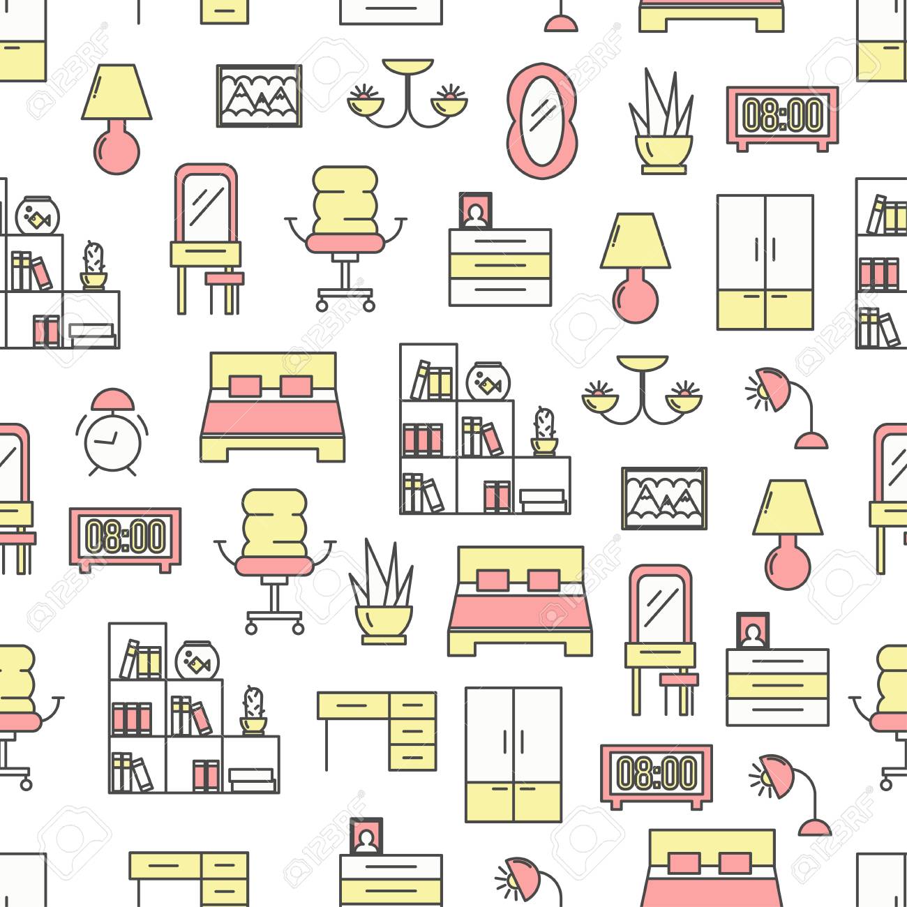 https www shutterstock com image vector furniture linear icons seamless pattern background 610788506