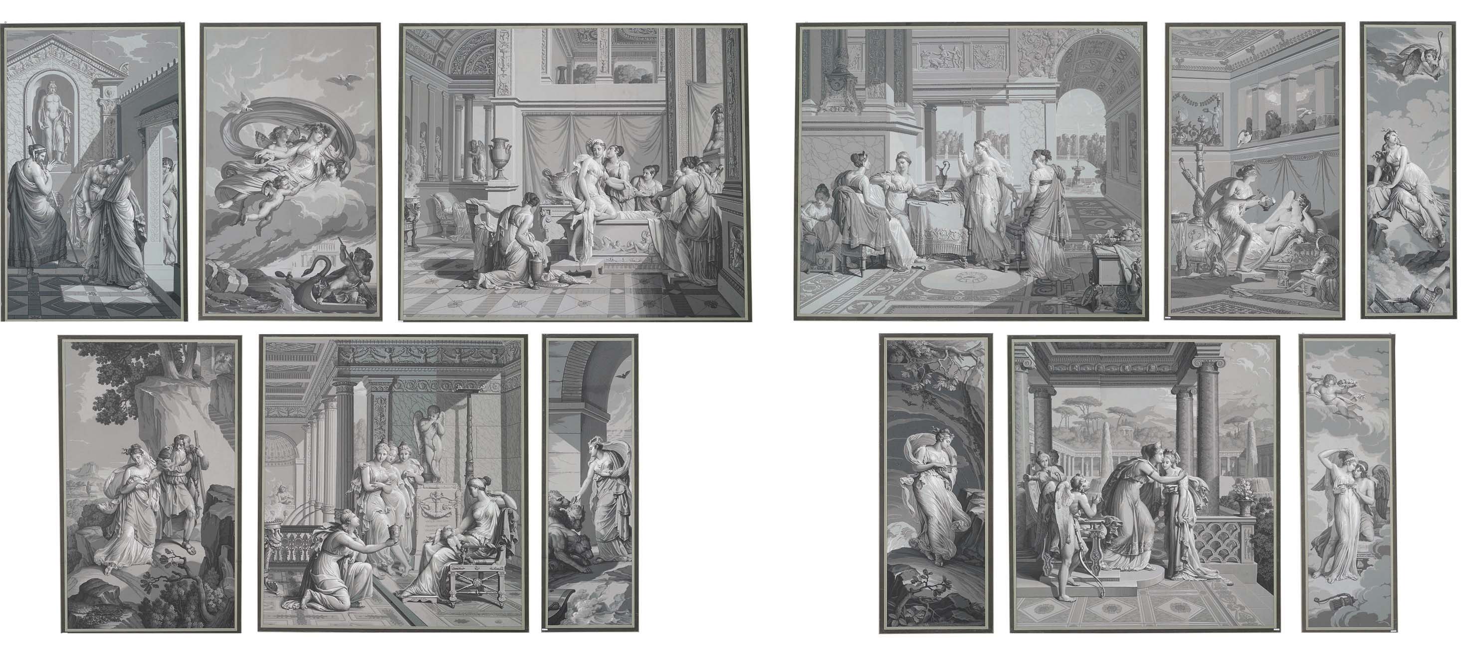 twelve french grisaille wallpaper panels