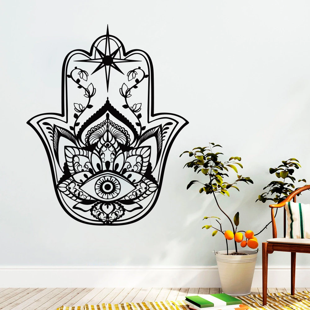 hamsa fatima hands vinyl wall stickers east patterns home decor removable lotus style hamsa wallpaper yoga studio decal
