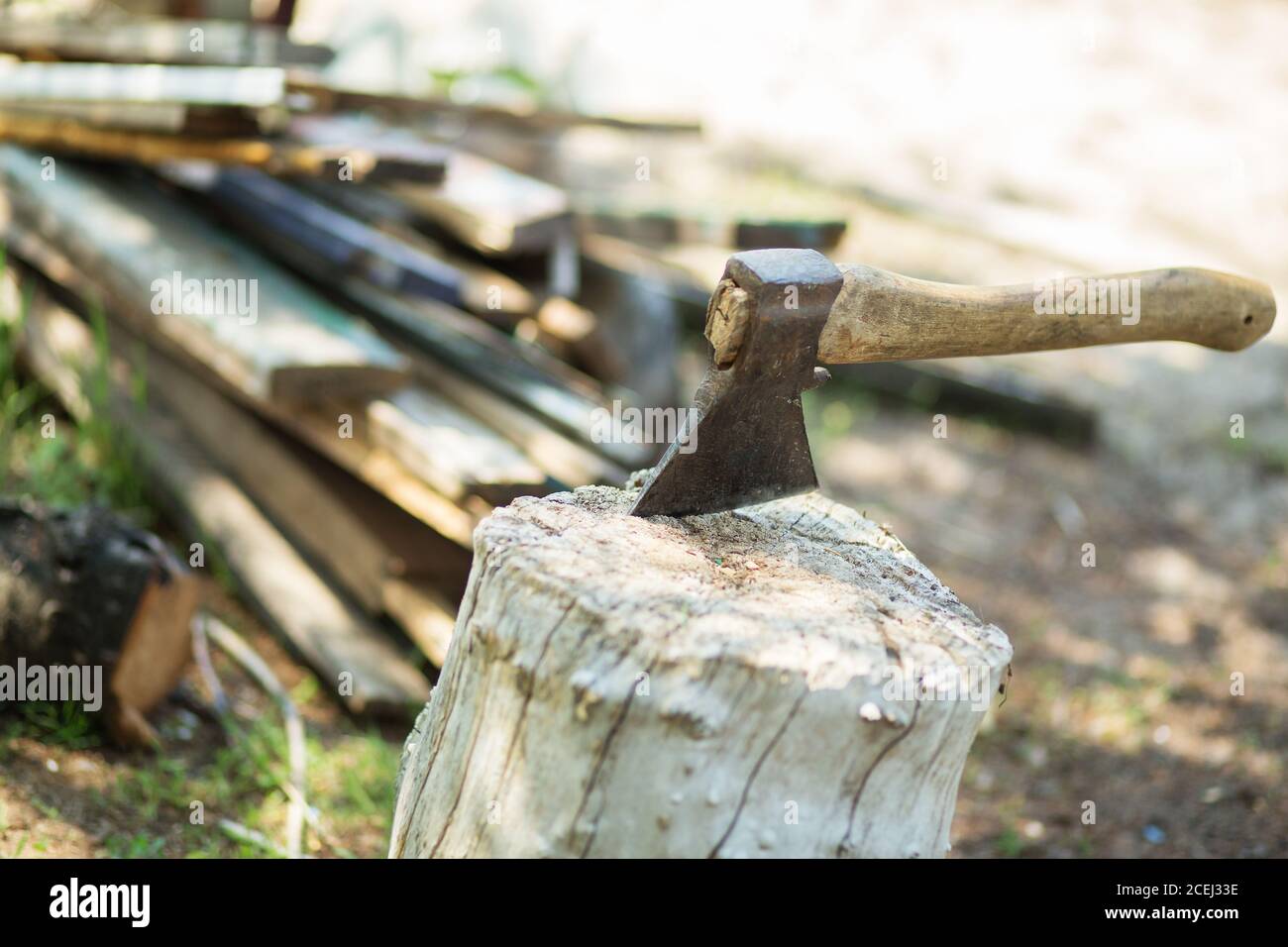 https www shutterstock com image photo hatchet stuck into splitting block surrounded 1883685652