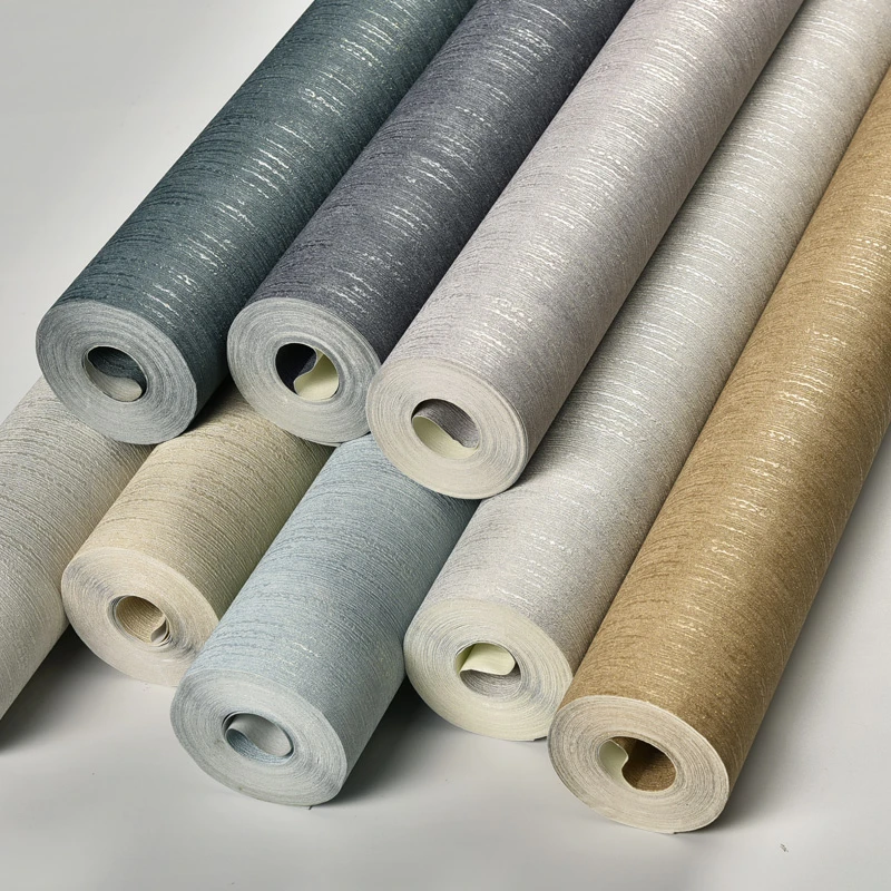 modern high quality embossed strip wallpapers plain solid color pvc wallpaper for bedroom living room wall paper roll