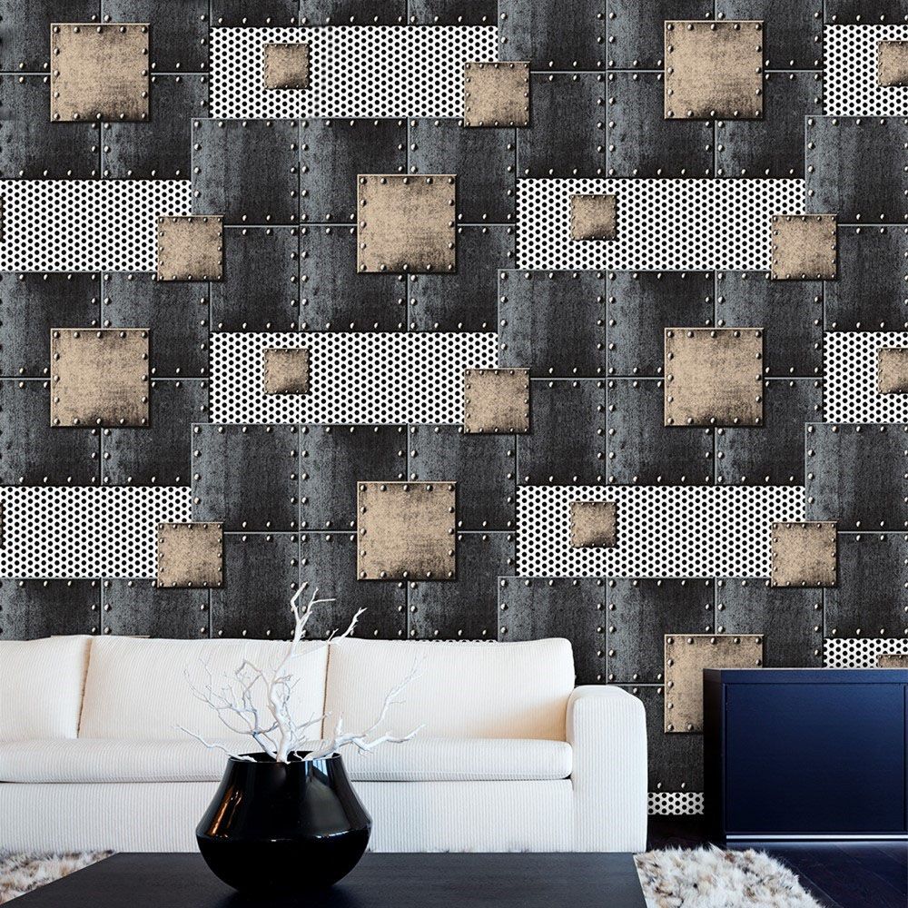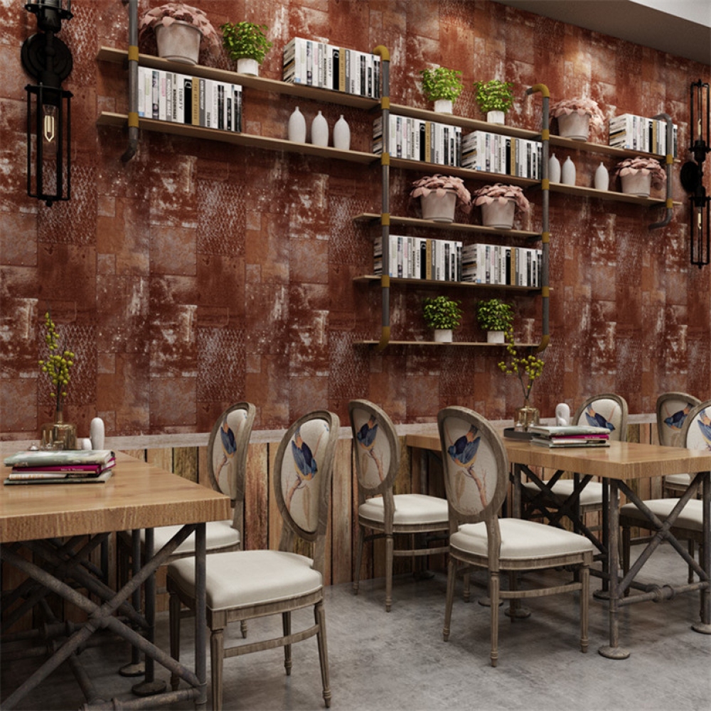 retro industrial metal effect wallpaper for restaurant 5 3