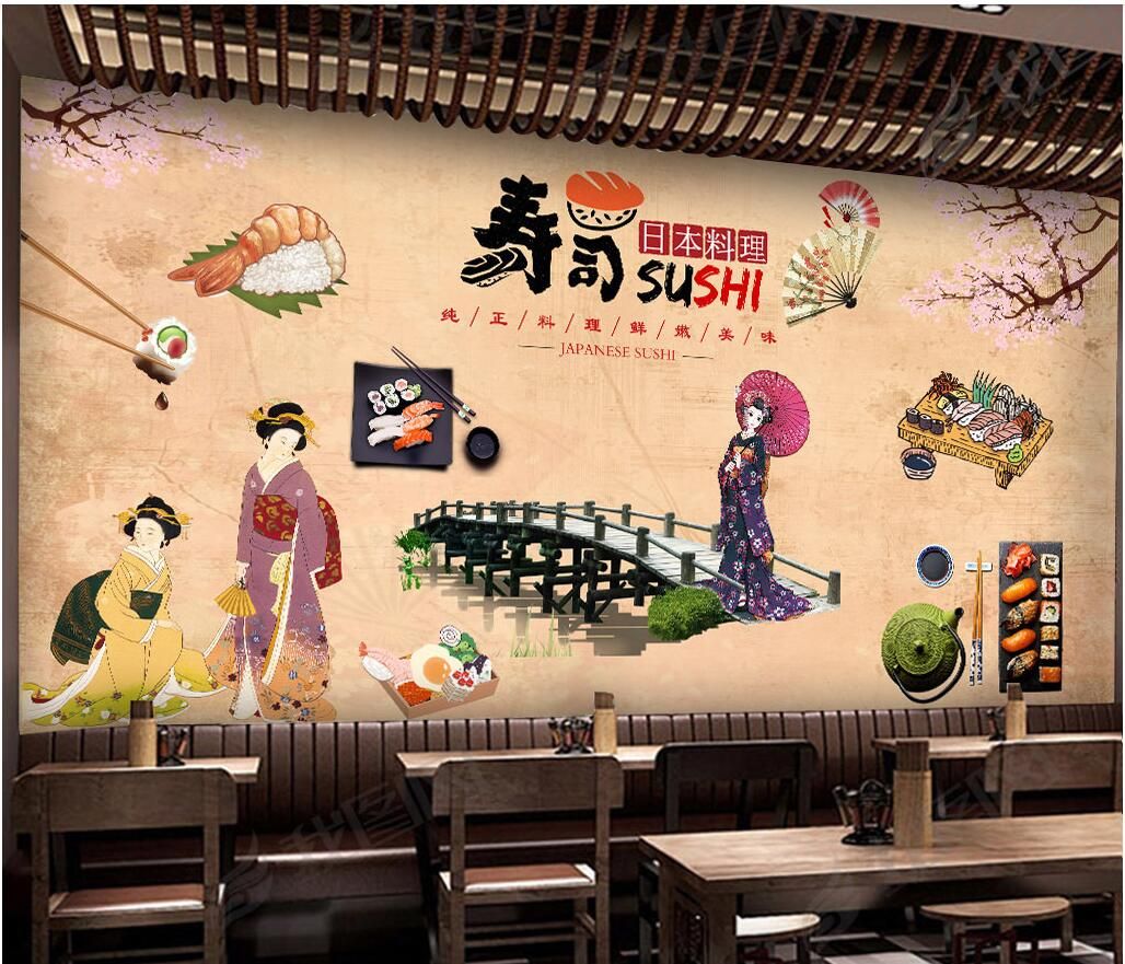 3d wallpaper custom photo mural hand painted japanese food sushi lady dining home decor living room wallpaper for walls 3 d
