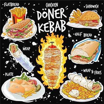 custom hand drawn doner kebab flat