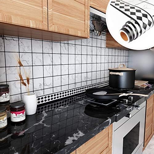 black and white peel and stick wallpaper for kitchen 11 8inch x 78 7inch kitchen wallpaper bathroom self adhesive wall paper waterproof countertop