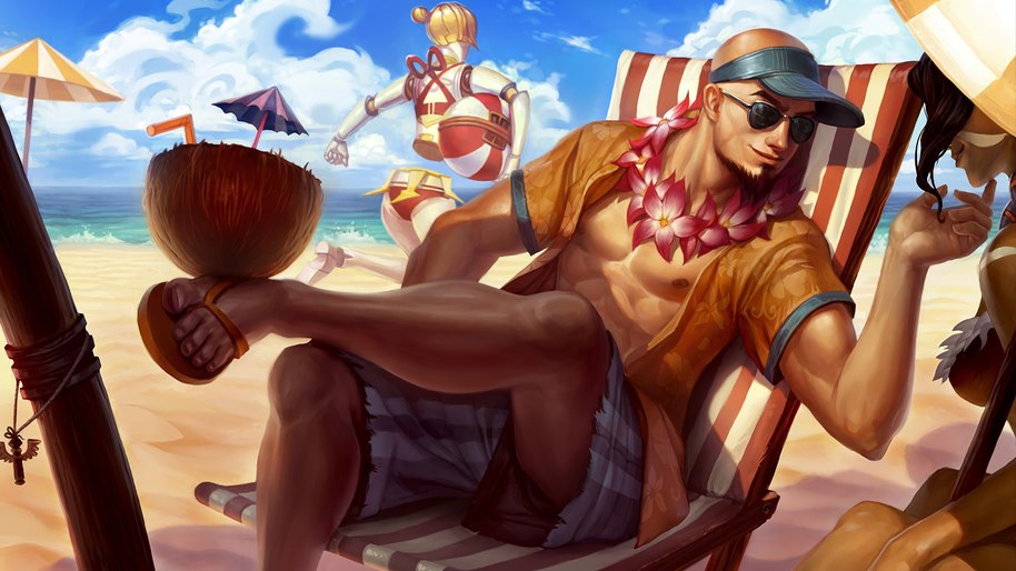 lee sin lol pool party splash art 4k