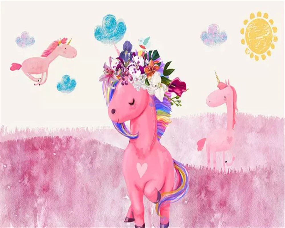 beibehang custom wallpaper 3d photo mural nordic minimalist unicorn flower background wall painting papel de parede 3d wallpaper