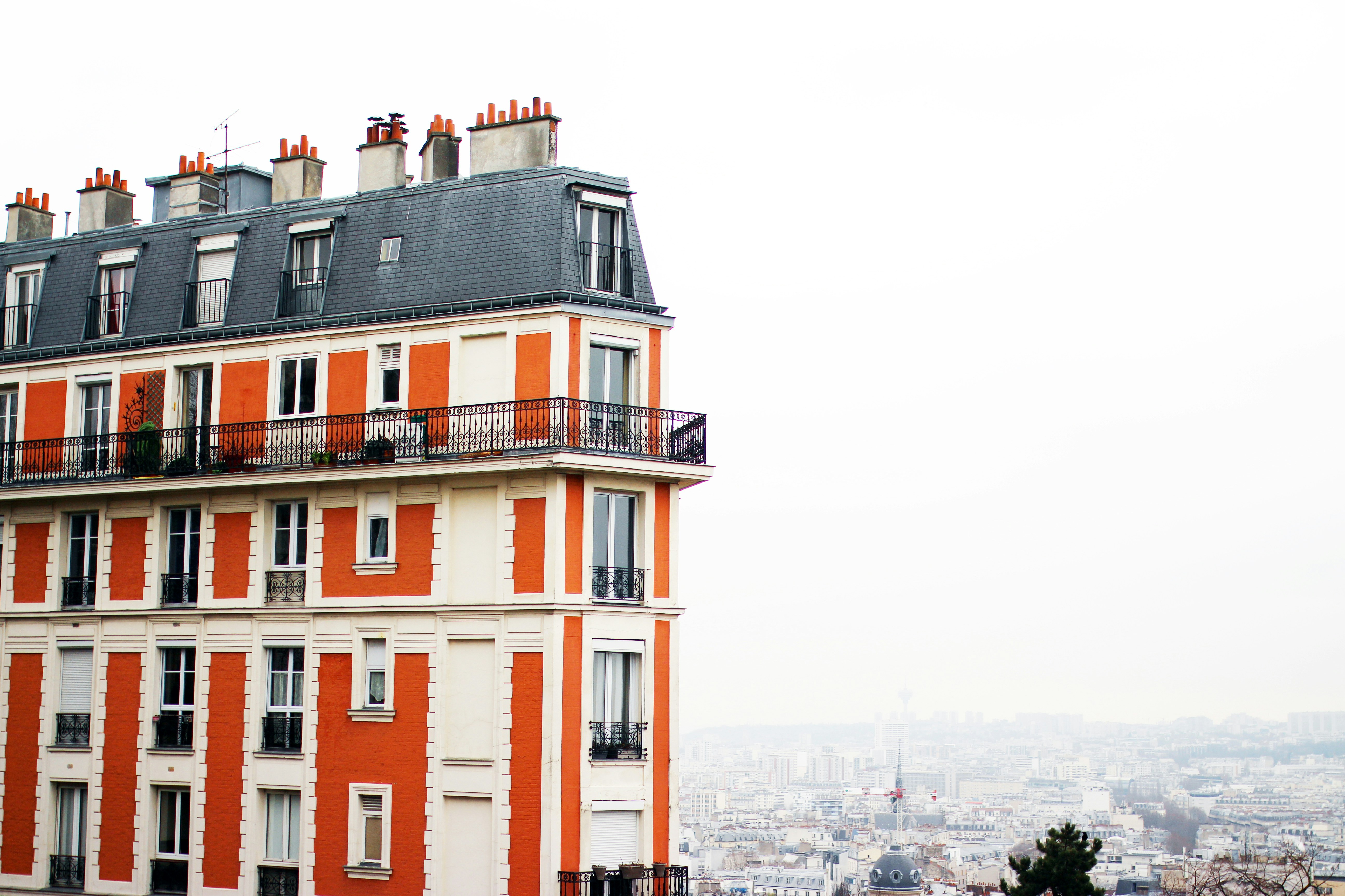 montmartre paris houses eiffel towers sky