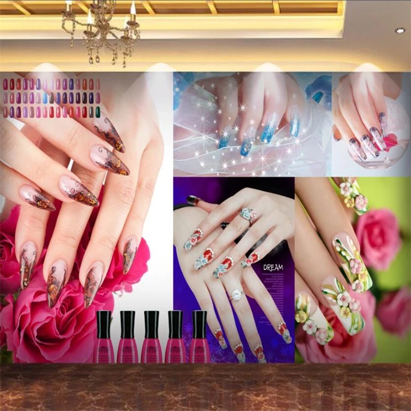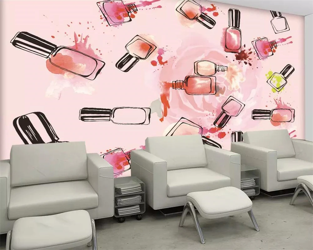 beibehang custom wallpaper 3d creative beauty salon cosmetics nail art tooling wall nail art makeup nail polish arm 3d wallpaper