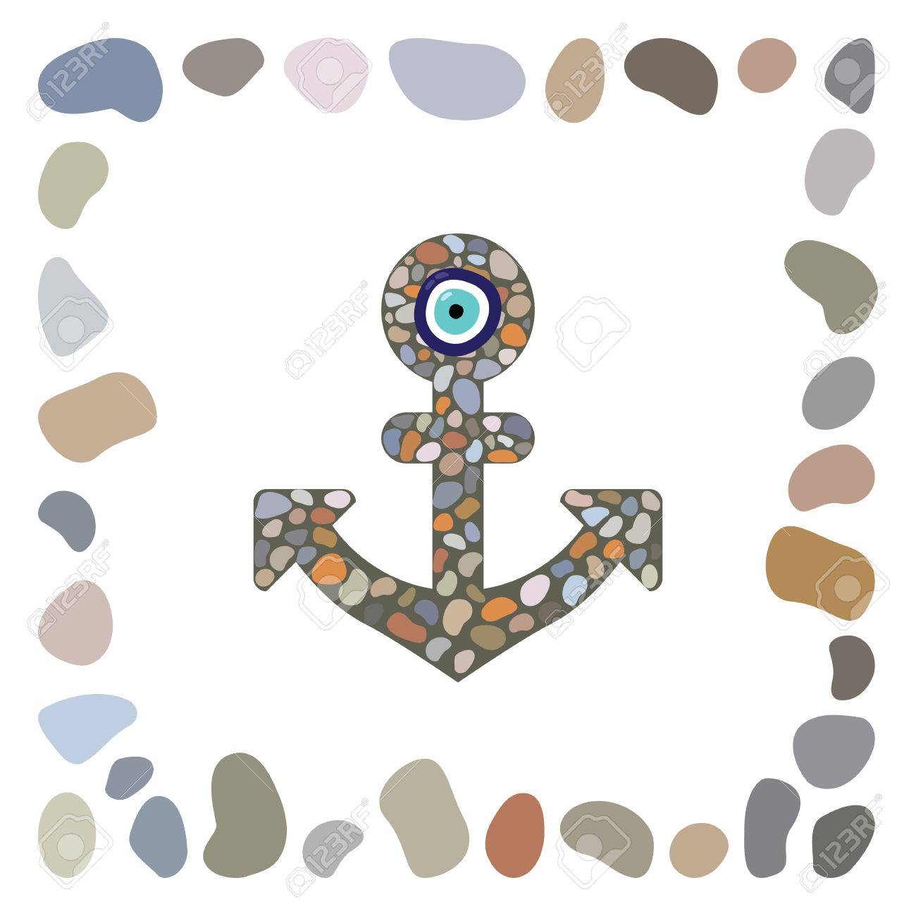 vector illustration sea stones arranged in anchor shape with