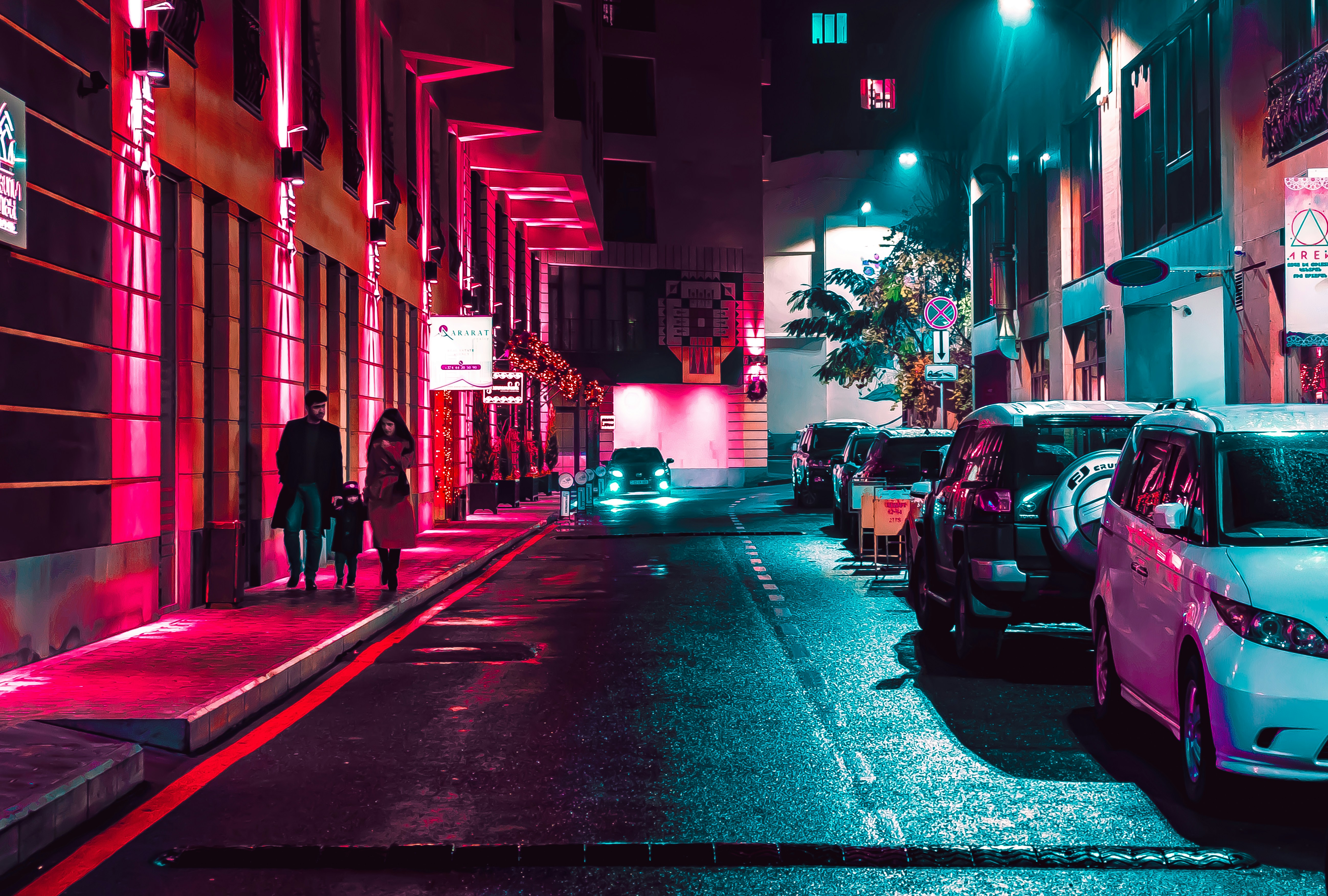 2560x1700 scifi neon cars on street
