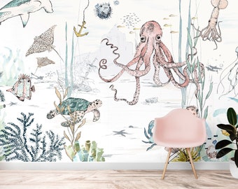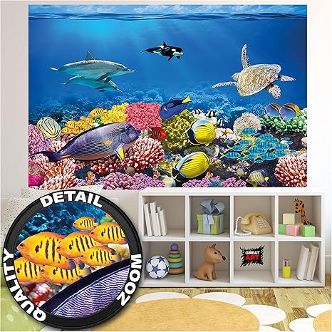 great art kid s room nursery photo wallpaper aquarium picture decoration underwater world sea dweller ocean fish turtle coral reef image decor