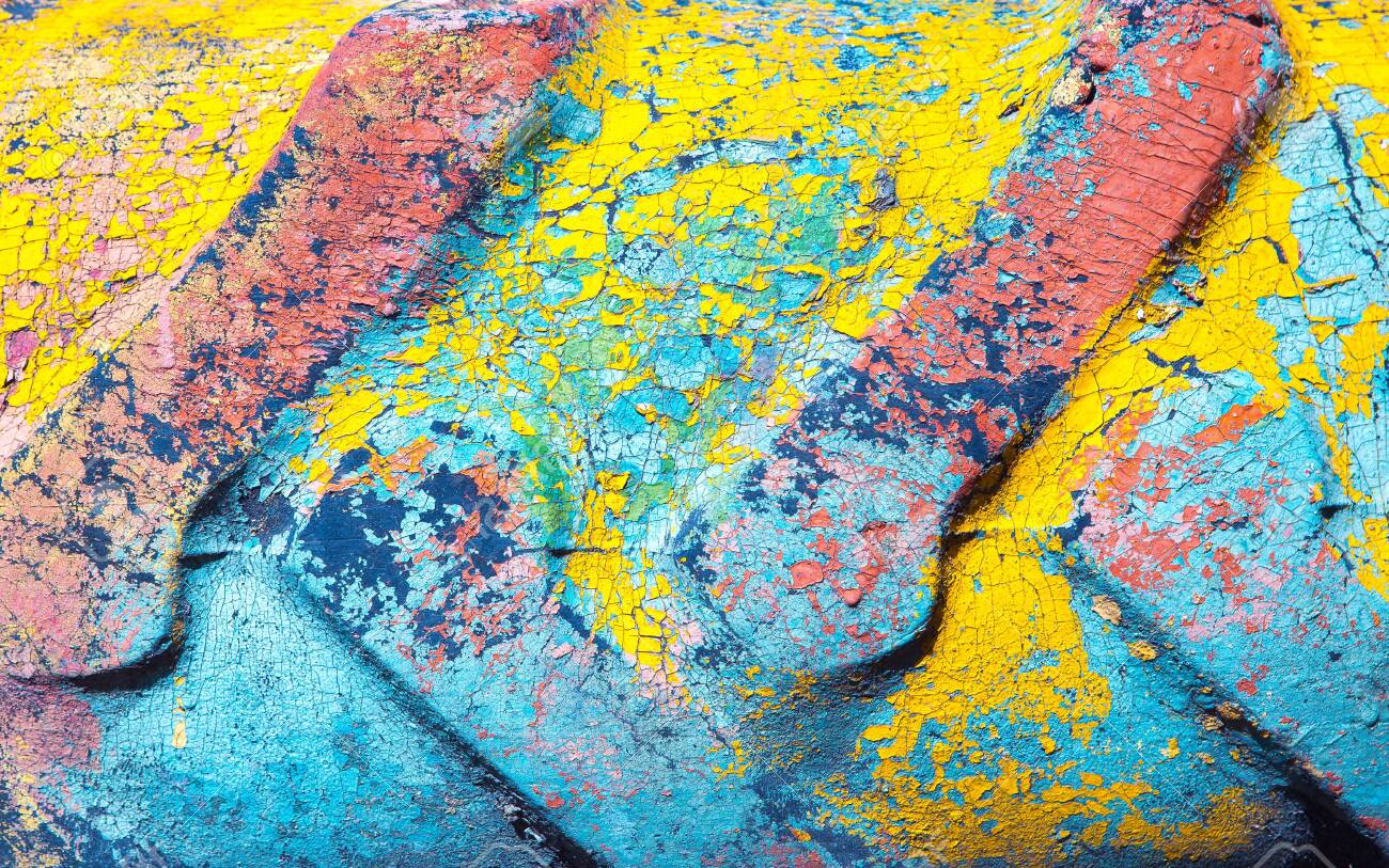 old car tire painted in various colors unusual background and