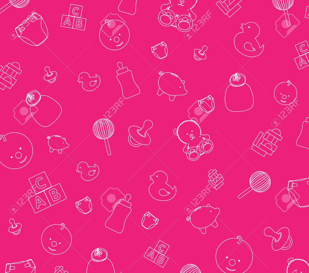 sweet pink baby girl elements seamless pattern wallpaper
