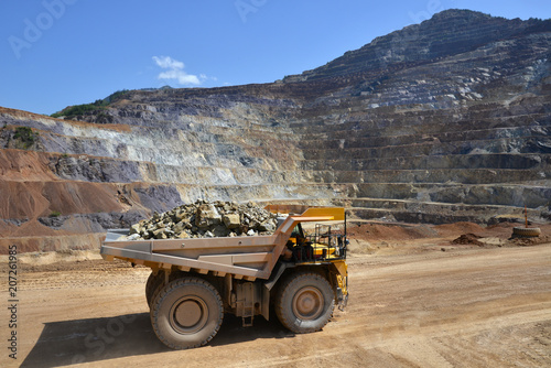 heavy loaded truck in front of opencast mining quarry wall mural